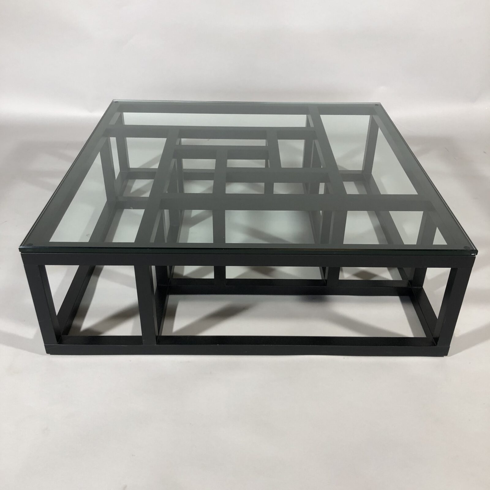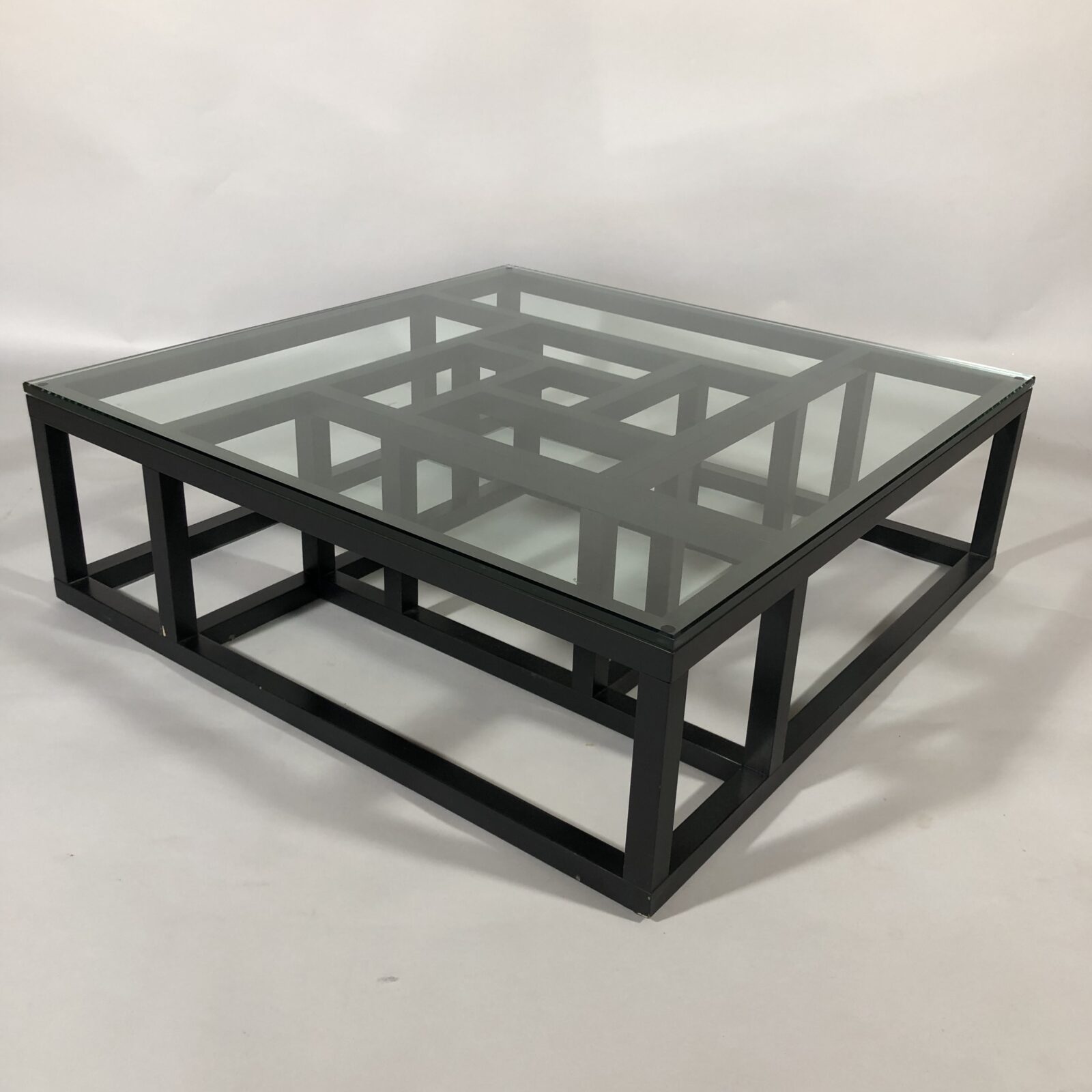 Ebony stained beech wood frame with adjustable feet and 12mm toughened glass.